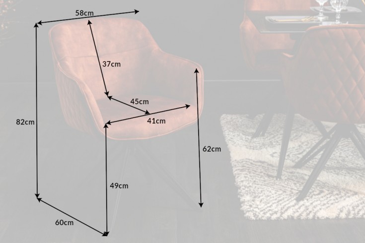 • sedák: 41 cm x 49 cm x 45 cm (ŠxVxH)